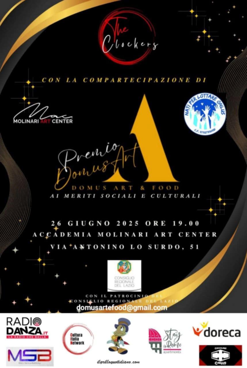L’Associazione culturale The Clockers, in collaborazione con DomusArt & Food, istituisce la seconda edizione del Premio al riconoscimento ai meriti socio-culturali “DomusArt”, inserito nel progetto BeLIVE Togheter, iniziativa atta a finalizzare il suddetto premio come evento annuale e autorevole.